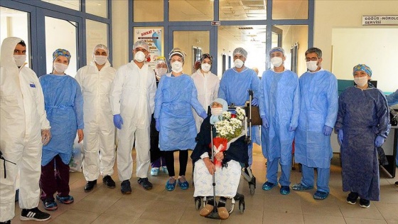 Iğdır'da yeni tip koronavirüs (Kovid-19) tedavisi tamamlanan KOAH hastası 85 yaşındaki kadın, hastaneden sağlık çalışanlarının alkışları eşliğinde uğurlandı.