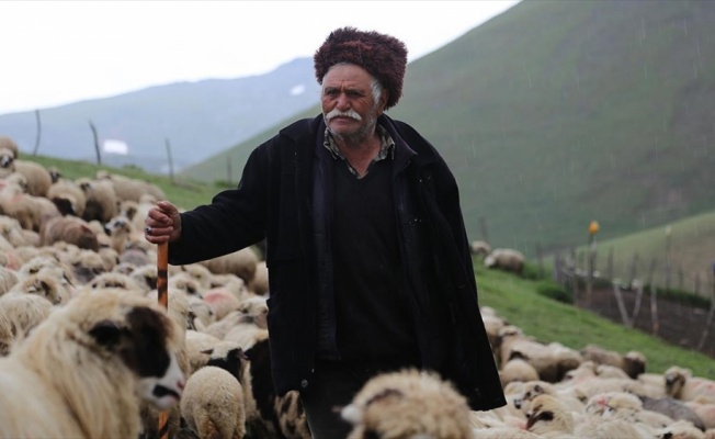 Ordu'da erken yaşta çobanlığa başlayan 85 yaşındaki Süleyman Okutan, ilerleyen yaşına rağmen, yaklaşık 2 bin rakımlı yaylada binlerce koyun sürüsünü idare ediyor.