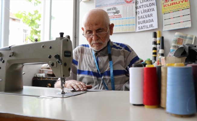 DENİZLİ (AA) - SEBAHATDİN ZEYREK - Denizli'nin Tavas ilçesinde yaşayan 90 yaşındaki Yusuf Yürekten, çok sevdiği mesleği terzilikte 80'inci yılına girdi.