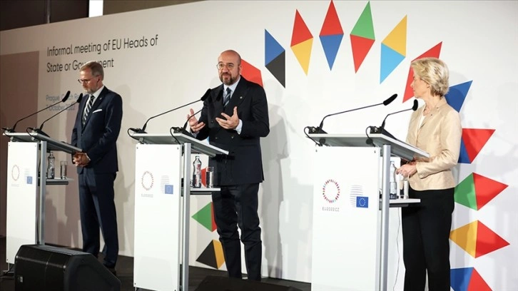 AB Konseyi Başkanı Charles Michel, AB Komisyonu Başkanı Ursula von der Leyen ve AB dönem başkanı Çekya'nın Başbakanı Petr Fiala, Prag'da düzenlenen gayriresmi AB Liderler Zirvesi bitiminde ortak basın toplantısı düzenledi.