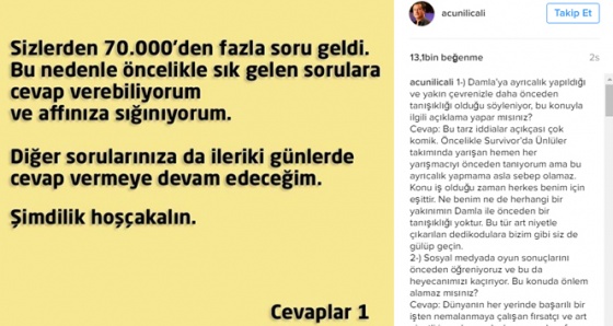 Ilıcalı'nın bu açıklamasının ardından Ilıcalı'ya 70 binden fazla soru yöneltildi. Acun Ilıcalı ilk aşamada 4 soruya cevap verdi ama ilerleyen günlerde diğer sorulara da cevap vereceğini açıkladı.
