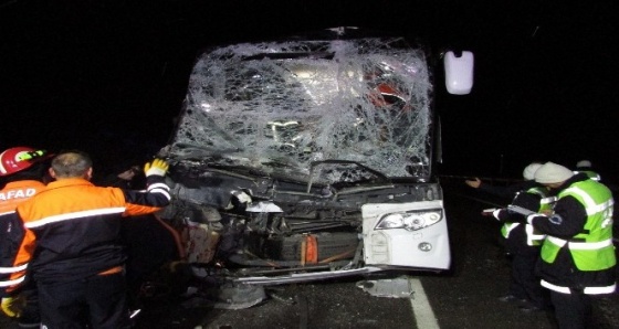 Bu gün 3.30 saatlerinde Afyonkarahisar-Antalya karayolu 30’uncu kilometresinde Afyonkarahisar istikametine seğir halinde ki 41 KT 386 plakalı Turgay Derin idaresinde ki çimento yüklü kamyona, Antalya’dan Bursa’ya gitmekte 07 S 3043 plakalı Eyüp Tüyüsüz idaresinde ki yolcu otobüsü çarptı. Kaza sonrası olay yerine çok sayıda sağlık görevlisi, itfaiye ekibi ve AFAD sevk edildi. Otobüs muavini ağır yaralanırken, Otobüs Şoförü Eyüp Tüysüz ile otobüs de yolcu olarak bulunan 11 kişide hafif şekilde çeşitli yerlerinden yaralandı. Yaralılar AFAD ve İtfaiye yardımı ile sıkıştıkları yerden çıkarılarak Afyonkarahisar ve Sandıklı ilçesindeki çeşitli hastanelere kaldırıldı.