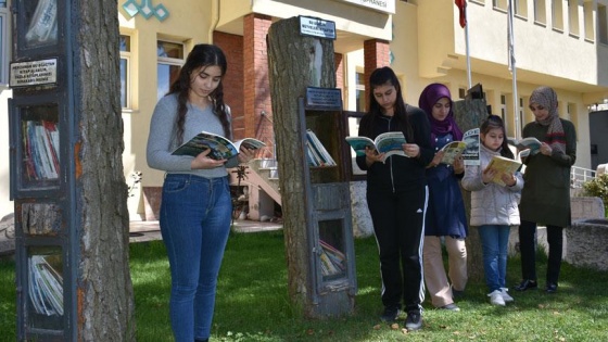 Ağaç kütüklerinin üzerinde "Bu ağacın meyveleri kitaptır", "Her zaman bu ağaçtan kitap alabilir, fazla kitapları bırakabilirsiniz" yazılı tabelaların bulunduğu kütüphaneyle, kitap okuma alışkanlığının yaygınlaştırılması amaçlanıyor.