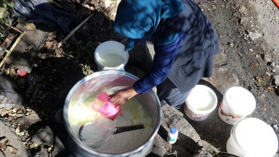 Kazanlarda kaynatılan sütü mayalayıp yoğurduktan sonra elle açma işlemi yapan kadınlar, tel tel olan peyniri tuzlu suya bırakıp belli bir kıvama gelmesi için bir gün dinlendirildikten sonra tüketime hazır hale getiriyor.