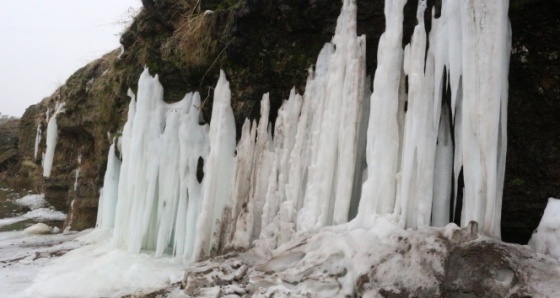 Şelalenin fotoğrafını çekerek anı ölümsüzleştiren Muhammed Sefa Seyhan, kayaların neredeyse tamamen buz tuttuğunu ve buz sarkıtlarının boyunun 10 metreyi bulduğunu söyledi.