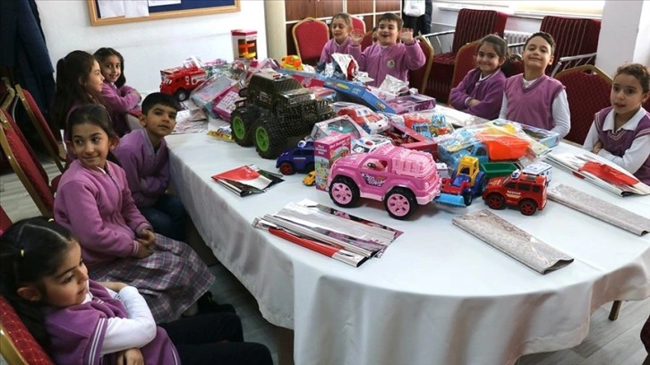 İbrahim Çeçen İlkokulunda düzenlenen programa katılan Vali Mustafa Koç ve eşi Neslihan Gül Koç, öğrencilerle toplanan oyuncakları kolilere yerleştirdi.