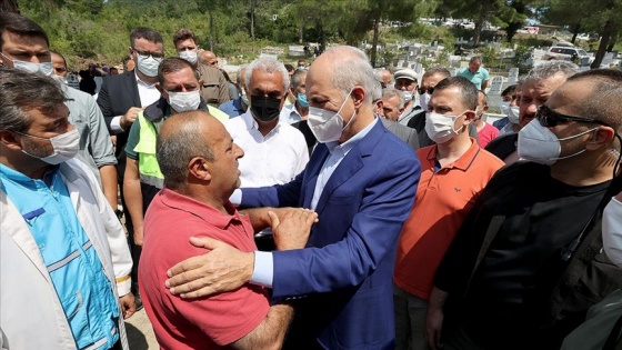 "Bugün buraya geniş bir heyet olarak gelmemizin sebebi, bugün bakan arkadaşlarımız Cumhurbaşkanlığı Kabine Toplantısı için Ankara'ya geçip bu felaketle ilgili sunumlarını yapacaklar, bundan sonrasıyla ilgili kararların alınması için katkı sunacaklar. Sahanın boş kalmaması, buradaki çalışmalara duruşumuz, karınca misali yerimizi belli etmek, buradaki vatandaşlarımıza kardeşlik vazifemizin gereğini yerine getirmek için buradayız. Arkadaşlarımız köylere kadar dağılıp oralarda incelemeleri yapıyorlar."