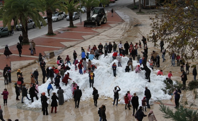 Antalya’nın Alanya ilçesinde Alanya Belediyesi tarafından Torosların eteğinden İskele Şelale Meydanı’na getirilen 8 kamyon dolusu kar, 7’den 70’e herkesin eğlencesi oldu.