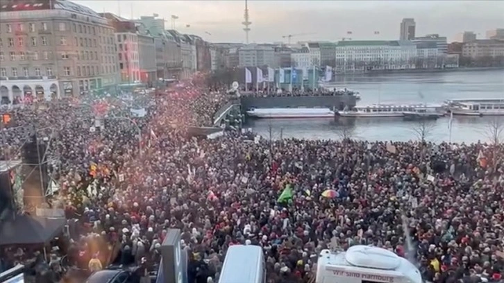 Hamburg kentinin Jungfernstieg bulvarında toplanan yaklaşık 50 bin kişi, "Hamburg ayağa kalkıyor - Aşırı sağcılığa ve Neo-Nazi ağlarına karşı" temasıyla gösteri düzenlendi.