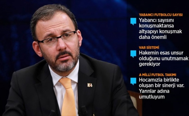 Bakan Kasapoğlu, yabancı oyuncu konusunun Türkiye Futbol Federasyonunun sorumluluğunda olduğunu belirterek, şunları kaydetti: "Onların bu konuda çalışmaları var. Burada yabancı futbolcu sayısını konuşmaktansa, ülkemizde altyapıyı konuşmanın çok daha önemli olduğunu düşünüyorum. Altyapı bizim vazgeçilmezimiz olmalı. Burada en temel şart üretim. O yüzden üreteceğiz, daha çok yetiştireceğiz, altyapıya daha çok yatırım yapacağız. Çok güzel modeller var. Altınordu ve Bursaspor modelleri. Bunları bizim mutlaka arttırmamız gerekiyor. Bizim tüm branşlarda yetiştirme, eğitme ve altyapı yatırımlarını desteklemekten başka çıkış yolumuz olmadığını düşünüyorum. Kulüplerimiz, karşılaştıkları finansal sorunlardan dolayı altyapıyı çok önemli bir çıkış noktası olarak görüyorlar. Bu da önemli bir kazanım oldu diye düşünüyorum." Kasapoğlu, Video Yardımcı Hakem (VAR) sisteminin iyi bilinmesi ve anlatılması gerektiğini dile getirerek, "VAR, öncellikle minimum müdahale ve maksimum yarar ilkesine göre çalışan bir sistem. Yeni bir sistem. Bu sistemin yavaş yavaş oturacağına inanıyorum. Elbette teknoloji yardımcı bir unsur. Hakemlere yardımcı olması amacıyla devreye alınan bir unsur. Önemli olan insan faktörü. Biz hakemlerimize bu çerçevede güveniyoruz. Bu sistemin iyi bilinmesi ve anlatılması gerektiğini düşünüyorum. Esas unsurun hakem olduğunu unutmamak lazım. Hakemlerimize güveniyoruz." diye konuştu.