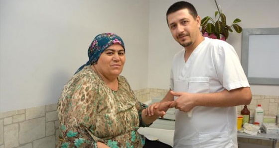 47 yaşındaki ev hanımı Sırasöğüt, bundan 2 yıl önce sol elinden tendon ameliyatı oldu. Ameliyat sonrasında mutlaka yapması gerek kültür fizik hareketlerini oğlunun bakıma muhtaç olması nedeniyle aksatan Sırasöğüt'ün sol elinin üç parmağı hareketsiz kaldı.