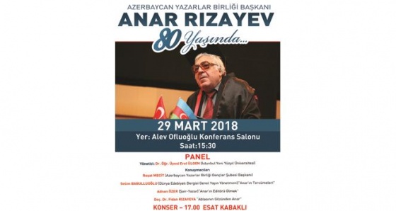 Dünyaca ünlü Azeri yazar Anar Rızayev’in 80’inci doğum günü anısına 29 Mart Perşembe günü saat 15.30’da İstanbul Yeni Yüzyıl Üniversitesi’nde ünlü yazar Rızayev’in de onur konuğu olarak katılacağı bir panel düzenlenecek.