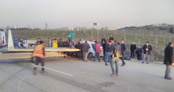 İçinde 4 kişinin bulunduğu otomobil metrelerce sürüklendi. Kazada otomobil sürücüsü Gülgün Yavuzcan (75) olay yerinde hayatını kaybederken, araçtaki 3 kişi yaralandı. kamyon şoförü ise kazayı hafif yaralı olarak atlattı. Vatandaşların ihbarı üzerine olay yerine çok sayıda sağlık, polis ve itfaiye ekibi sevk edildi.