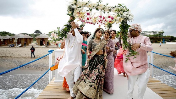 Antalya'da Hint geleneklerine göre yapılan düğüne Hindistan ve çeşitli ülkelerden yaklaşık 600 davetli katıldı. 4 gün 4 gece süren düğün "hoş geldiniz" partisiyle başladı.