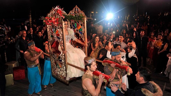Antalya'da büyük ilgi görmesi beklenen Hint düğünü sezonu, parıltılı taşlarla bezeli, dört kişinin taşıdığı tahta oturmuş gelin konseptli bir düğünle açıldı.