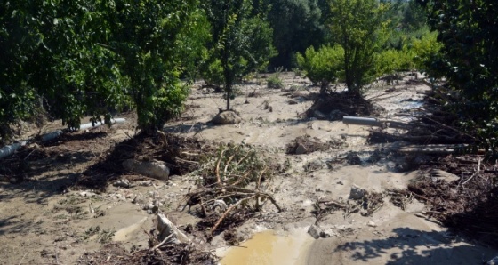 Korkuteli ilçesine bağlı Sülekler Mahallesi’nde dün akşam etkili olan yağış nedeniyle sel baskınları meydana geldi. Şiddetli yağış nedeniyle dereler taştı, meyve ağaçları sel içinde kaldı. Sel sonrası onlarca dönüm tarım arazisi ile meyve bahçeleri kullanılamaz hale geldi. Derelerin taşması sonrasında meydana gelen sel baskınları nedeniyle Korkuteli - Tefenni yolu yaklaşık 3 saat boyunca trafiğe kapandı. Onlarca araç yolda mahsur kalarak uzun kuyruklar oluşturdu. Korkuteli Belediyesi görevlileri uzun bir uğraştan sonra ana yolu trafiğe açmayı başardı. DSİ Antalya Bölge Müdürü Hayrullah Coşkun, Bölge Müdür Yardımcısı Yüksel Tazegül, Makina İmalat ve Donatım Şube Müdürü Hasan Hüseyin Öz ve AK Parti Korkuteli İlçe Başkanı İlhami Yıldıran ile birlikte Korkuteli ilçesi Sülekler Mahallesinde taşkın yaşanan bölgeyi ve yapılan çalışmaları yerinde inceledi.