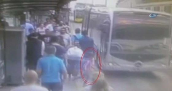 Olay, Okmeydanı metrobüs durağında bugün akşam saatlerinde meydana geldi. Edinilen bilgiye göre, durak içerisinde bulunan ve mendil sattığı öğrenilen bir çocuk burada arkadaşıyla şakalaşmaya başladı. Arkadaşı tarafında duraktan kovalanan çocuk aniden metrobüs yoluna atladı. Aniden yola atlayan çocuğa durağa yanaşan bir metrobüs çarptı. Çocuk feci kazayı hafif sıyrıklarla atlatırken kaza anı güvenlik kameralarına yansıdı.