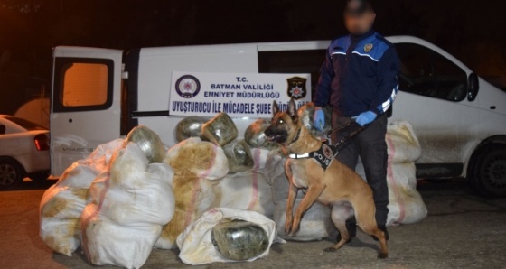 Polisin uyuşturucu madde arama köpeği 'Sarıkız' ile minibüste yaptığı aramada 477 kilogram uyuşturucu esrar maddesi ele geçirildi. Konuyla ilgili olarak yakalanan 2 şüpheli şahıs çıkarıldıkları adli makamlarca tutuklanarak cezaevine konuldu.