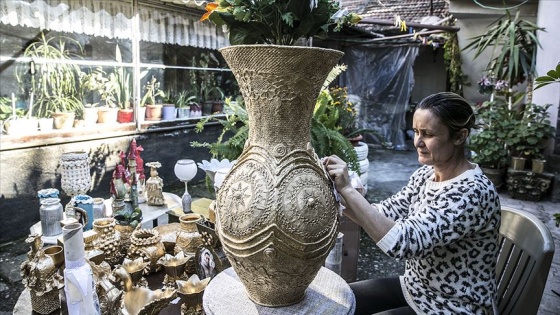 Konuşmaz'ın, atık malzemelerden yaptığı özel tasarımlı dekoratif ürünler dikkati çekiyor.