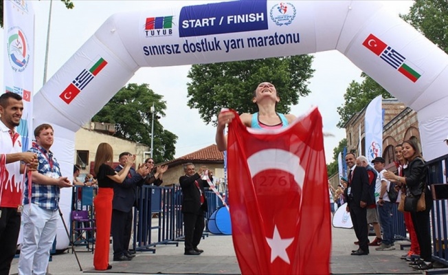 EDİRNE (AA) - Türk, Yunan, Bulgar Dostluk Grubu Derneğince (TUYUB) düzenlenen Sınırsız Dostluk Yarı Maratonu'nda atletler, Türkiye-Yunanistan sınırını vizesiz geçti.