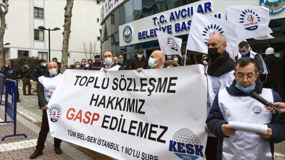 Avcılar Belediyesi binası önünde toplanan işçiler, çeşitli pankartlar açıp slogan attı.
