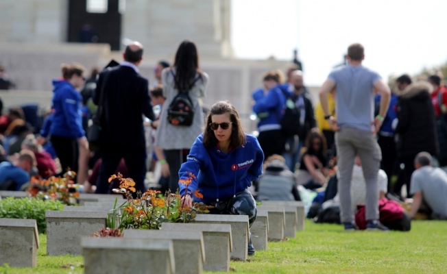 Şafak ayininin ardından ’yalnız çam’ anlamına gelen "Lone Pine Anıtı’na koşan Avustralyalılar, atalarının mezarlarını ziyaret ederek çiçek bıraktı.