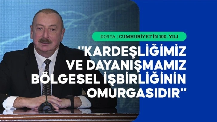 Anadolu Ajansının (AA) Cumhuriyet'in 100. yılı dolayısıyla hazırladığı dosya haberler kapsamında bu haberde, Azerbaycan Cumhurbaşkanı Aliyev'in, Türkiye Cumhuriyeti'nin 100. yılı dolayısıyla AA aracılığı ile gönderdiği yazılı mesajını yayınlıyoruz. Aliyev şunları ifade etti: