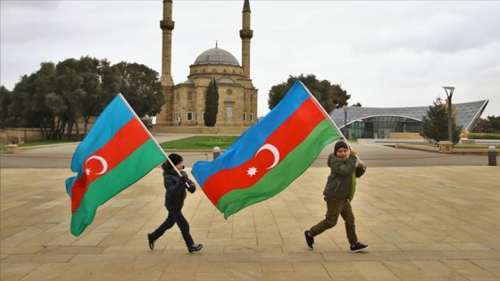 Burada birbirini kutlayan vatandaşlar, Azerbaycan Milli Marşı'nı okudu, sloganlar atarak sevinç gösterisinde bulundu.