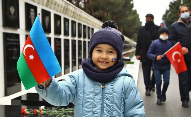 Azerbaycan ordusunun Laçın'a girmesinin ardından binlerce Azerbaycanlı, Türk ve Azerbaycan bayraklarıyla Şehitler Hıyabanı'na ziyarette bulundu.