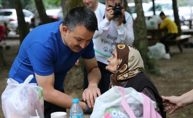 İlk olarak 900 metrelik parkurda, vatandaşların da katılımıyla yürüyüş yapan Pakdemirli, bitiş noktasında katılımcılara su ve dondurma ikram edip fidan hediye etti.