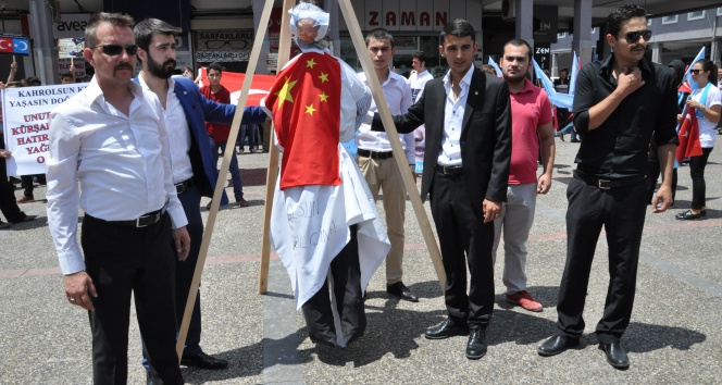 Kamusen İl Temsilcisi Yılmaz Kuran ise 'Ramazan ayında, Doğu Türkistan'da bir millet kan ağlarken bütün dünya yine kör sağır ve dilsiz olarak bu alçakça zulmü seyretmektedir. Çin devleti yıllardır işgal ettiği Doğu Türkistan'da sistematik katliamlar gerçekleştirmektedir.Doğu Türkistan'da evlerinden, yurtlarından edilmiş yüz binlerce kardeşimiz katledilirken hiç kimsenin bu katliamlar karşısında gözlerini kapatmaya hakkı yoktur.Batı 150 yıldır Türkistan'ın feryadını duymazdan geldi. Nedense işine her gelen olayda ayağa kalkan batı, konu Müslüman ve Türk olunca kör, sağır, dilsiz oluveriyor. Bugün Türkistan kan ağlıyor. Ata yurdumuzda bizden olan ve yüz yıllardır işgallere direnen, soykırımlara dayanan İslam'ın Türklüğün sancağını güneşin doğduğu en uzak noktada dalgalandıran Doğu Türkistan'lı kardeşlerimizi ilgisizliğin girdaplarında, cellatlara teslim eden anlayışı şiddetle protesto ediyoruz' dedi.