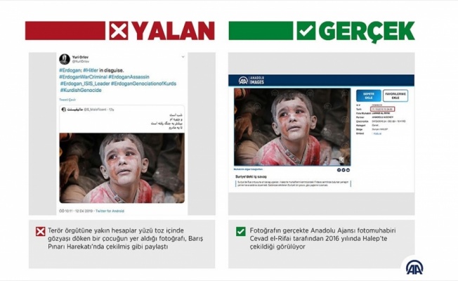 AA fotoğrafını da kullandılar Suriye iç savaşında 2016'da Anadolu Ajansı (AA) foto muhabiri Cevad el-Rifai'nin objektifine yansıyan yüzü toz içinde bir çocuğun portresini kullanan manipülatör bir hesap, bu görüntüyle harekat aleyhine dezenformasyon girişiminde bulundu.