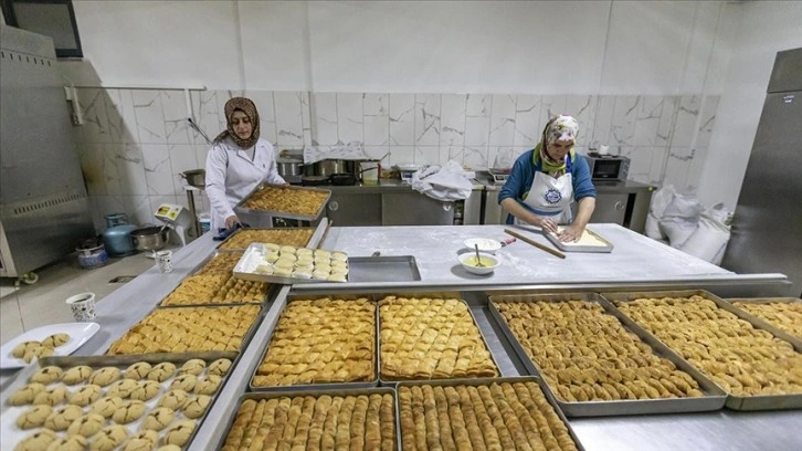 Kadınlar, yöresel yemekler, mantı, kömbe, Malatya usulü analı kızlı köftenin yanı sıra bayram için özel olarak sipariş verilen ev baklavası, soğuk baklava ve midye tatlısı hazırlıyor.