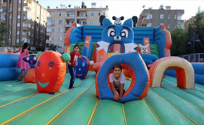 MARDİN (AA) - Mardin Büyükşehir Belediyesi Sosyal Hizmetler Daire Başkanlığınca 15 Temmuz Demokrasi ve Şehitler Parkı'na kurulan ve bir ay hizmet verecek parkta 5-14 yaş arası çocuklar trambolin, top havuzu, mini golf, tırmanma duvarının da yer aldığı 9 oyun parkurunda eğlenceli zaman geçirecek.