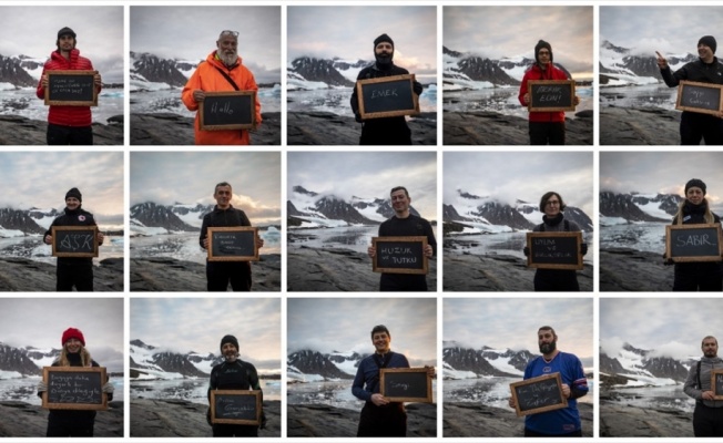 Sefere katılan bilim insanları, Antarktika'daki çalışmalarının ardından dünyaya mesajlarını küçük bir kara tahtaya yazarak verirken, yazılarda bilim, sevgi ve çevresel duyarlılık vurguları öne çıktı.