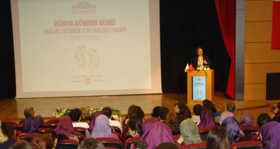 Türkiye'de böbrek hastalıklarının sıkça görüldüğünü, yapılan çalışmalarda her 7 kişiden birinde böbrek rahatsızlığı olduğunun ortaya çıktığını hatırlatan Rektör Prof. Dr. Rümeyza Kazancıoğlu, “Son verilere göre dünyada her 10 kişiden birinde böbrek hastalığına sahip olduğunu görüyoruz. Böbrek hastalıklarının birçok sebebi var. Sağlıklı yaşam, egzersiz böbrekleri koruyor. Bol bol su içilmesi gerekiyor. Zaman zaman kan basıncının kontrol edilmesi ve tuzun kullanılmaması gerekiyor. Buradaki hedefimiz böbrek hastalıkları ile ilgili bir fikir, algı oluşturmak. Hedefimiz böbrekleri korumaya çalışmak. Eğer bir hastalık geliştiyse bunun erken dönemde tanısını koyup son döneme gitmeden hastalığı durdurmak ve tedavi etmektir. 11 yıl içerisinde her yıl başka bir konuya değinerek yolumuza devam ettik. Bu yıl da sağlıklı yaşamın böbrekler üzerine etkisini ele aldık" şeklinde ifade etti.
