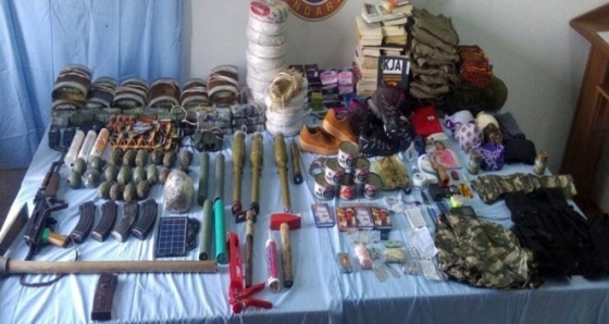 Bitlis Valiliğinden yapılan açıklamada, Tatvan ilçesi Çavuşlar ve Anadere köyleri bölgesinde faaliyet gösterdiği değerlendirilen bölücü terör örgütü mensuplarının etkisiz hale getirilmesi maksadıyla Tatvan 10’uncu Komando Tugay Komutanlığı ve Bitlis İl Jandarma Komutanlığı unsurlarınca operasyon düzenlendiği belirtildi. Açıklamada, “Bölücü terör örgütü mensuplarının muhtemel geçiş güzergâhları üzerinde K/G, P/D faaliyeti icra etmek, bölücü terör örgütü mensuplarına yardım ve yataklık ettiği tespit edilen şahısların ev ve eklentilerinde adli arama yapmak, karayolu üzerinde devriye görevi icra ederek kaçış güzergâhlarını tıkamak maksadıyla 20 Haziran 2017 tarihinden itibaren Şehit Piyade Sözleşmeli Er Muhammed Bozarslan-30 Operasyonu icra edilmiştir. Anadere köyü kırsalında yapılan aramada 1 adet Kalaşnikof piyade tüfeği, 5 adet Kalaşnikof piyade tüfeği şarjörü, 1 adet Hk-33 piyade tüfeği şarjörü, 219 adet Kalaşnikof mermisi, 3 adet antitank roketatar mühimmatı, 4 adet roketatar sevk fişeği, 1 adet anti personel roketatar mühimmatı, 20 adet savunma tipi el bombası, 8 adet basma düzenekli EYP, 1 adet elektrikli fünye, 6 metre infilaklı fitil, 2 adet el telsizi, bin 200 metre kablo, 1 adet batarya şarj cihazı, 248 adet pil, 6 adet pil bloğu, 1 adet marka fotoğraf makinesi, 1 adet gündüz görüş dürbünü, 3 adet hücum yeleği, 6 adet kütüklük, 1 adet güneş paneli, 37 adet örgütsel kitap, muhtelif yaşam ve gıda malzemesi ele geçirilmiştir. Ele geçirilen malzemelerin temininde örgüt mensuplarına yardım ve yataklık ettiği değerlendirilen 16 şahıs, cumhuriyet savcısının talimatı ile gözaltına alınmış olup haklarında adli tahkikata devam edilmektedir. Güvenlik güçlerimiz bölge halkımızın da desteği ile huzur ve güvenliği sağlamak maksadıyla ilimiz genelinde teröristlerle mücadelesini kararlılıkla sürdürecektir” denildi.