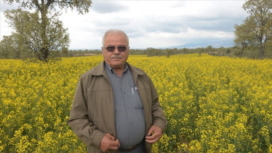 Uşak'ta da bin dekarlık arazisinde kanola üreten Ali Gültekin, kentte ürünün tarımına öncülük ediyor.