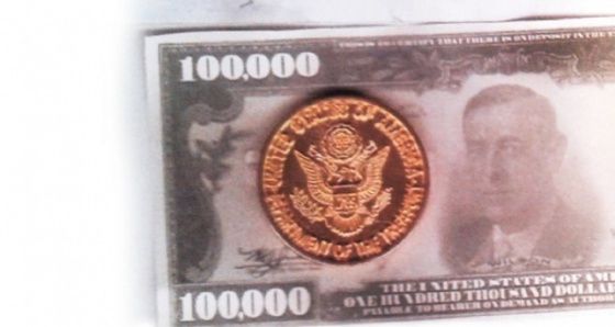 100 bin dolarlık altın sertifikalı kâğıt paralar, ABD’de 1934 yılında piyasaya sunuldu. Bu banknotlar federal hükümet tarafından basılan en yüksek değerli kâğıt paralar olarak biliniyor. Bu paralar, federal banka transferinde kullanılmıştı.