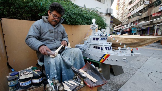 "Canım sıkılmasın diye elime aldığım bıçakla tahtaya şekil veriyordum. Yaptığım gemiler beğenilince özel sipariş almaya başladım. Ayakkabı boyayarak günde 10-20 lira kazanabiliyoruz. Üç çocuğum var. Ev kira. Maket gemileri satabilirsem kiramı çıkarıyorum, elektrik, su parasını ödüyorum."