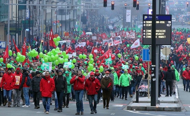 Çeşitli işçi sendikalarının çağrısı üzerine Brüksel merkezinde bulunan Kuzey Tren Garı önünde sabah saatlerinde 25 bin civarında kişi buluştu.