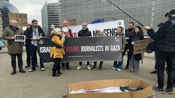 Brüksel merkezli Uluslararası Gazeteciler Federasyonu (IFJ), İngiltere ve İrlanda'da faaliyet gösteren Ulusal Gazeteciler Birliği (NUJ) ve Filistin Gazeteciler Sendikası (PJS) temsilcileri, yerel saatle 12.30 civarında Avrupa Birliği (AB) kurumlarının bulunduğu Schuman Meydanı'nda toplandı.