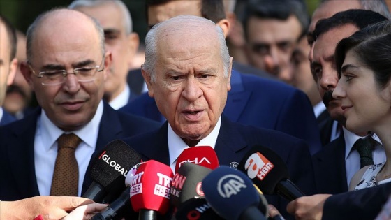 Mezarın başında nöbet tutanların bulunduğu kulübede bir süre oturan Bahçeli, buradan ayrılırken, basın mensuplarına açıklamada bulundu ve soruları yanıtladı.