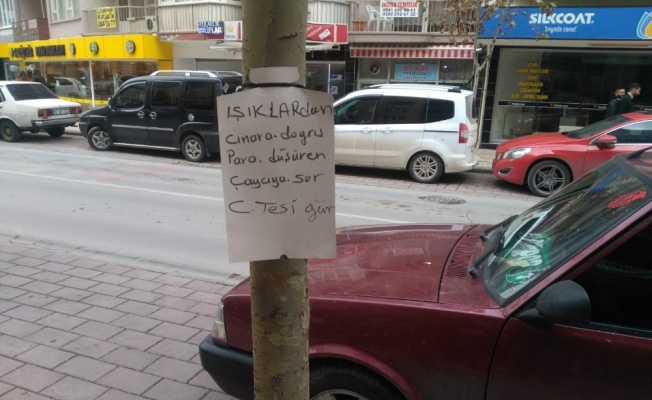 Denizli’de bir esnaf, yolda bulduğu paranın sahibini ağaca astığı ilanla arıyor.