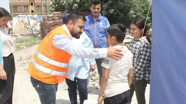 AK Parti'li gençler, beraberinde partinin Kadın Kolları üyeleri ve belediye personeliyle, 6 Şubat'taki depremlerin ardından çadırlarda ve hasarsız evlerde kalan aileleri ziyaret etti.