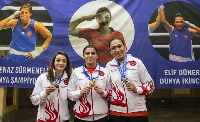 ANKARA (AA) - Rusya'nın Ulan Ude kentinde düzenlenen Dünya Kadınlar Boks Şampiyonası'nda dünya şampiyonu olan Busenaz Sürmeneli, dünya ikincileri Buse Naz Çakıroğlu ve Elif Güneri, Türkiye Boks Federasyonu Başkanı Eyüp Gözgeç, Başkan Vekili Hasan Kartal, yönetim kurulu üyeleri ve teknik ekip, Ankara Green Park Otel'de basın toplantısı düzenledi.
