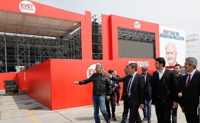 İki milyon kişinin gelmesi beklenen miting için alandaki çalışmalar devam ederken, 600 metrekarelik sahnenin kurulumunda sona yaklaşıldı.
