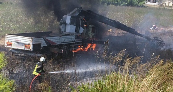 Olay yerine ulaşan itfaiye ekipleri yanan araca ve araziye sıçrayan yangına müdahalede bulunarak yangını kontrol altına alıp, bölgede ve araçta soğutma çalışması yaptı. Ekipler, vinçten kaynaklanan yangının sebebini araştırırken, olayla ilgili soruşturma başlatıldı.