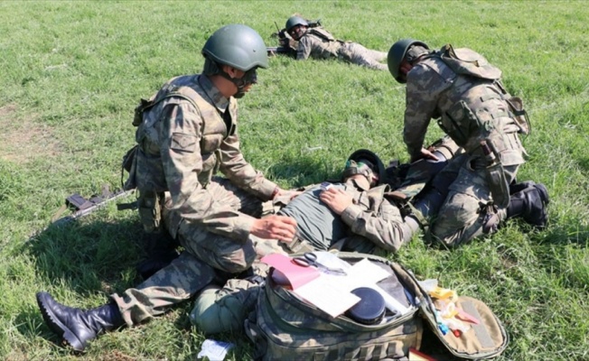 SAMSUN (AA) - Samsun Sahra Sıhhiye Okulu ve Eğitim Merkezi Komutanlığında ilk yardım ve tıbbi müdahalede bulunmanın yanı sıra komando eğitimi de alan askerler, muharebede Mehmetçik'e en ön saflarda ilk yardım ulaştıracak şekilde yetiştiriliyor.