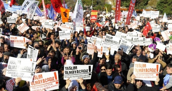 Tutuklanan vekiller için "rehin" dedi HDP İstanbul Eş Başkanı Doğan Erbaş ise, "Ben size Türkiye'nin parlamentoda grubu bulunan 3'üncü büyük partisinin eş başkanlığı adına konuşuyorum. Ama 3'üncü büyük partinin eş başkanları dahil 10 vekili şuan rehin alınmış durumda. Bu yüzden maalesef sizlere çok ayrı ayrı cezaevinden selam getirmek zorundayım. Figen Yüksekdağ ve Selahattin Demirtaş olmak üzere tüm vekillerimizin selamı var. bu günlerde sık sık cezaevlerini dolaşmak zorundayız. Bu mitingden arkadaşlarımızın haberi var, herkesin özel selamını getirdim size. Biz de şimdi buradan hem onları selamlıyoruz hem de bu alanda bulunan herkes adına şu sözü vermek istiyoruz: Siz asla ve asla boyun eğmediniz. Sizlere en içten dileklerimizi, buradan sevgilerimizi, saygılarımızı, selamlarımızı gönderiyoruz” diye konuştu.